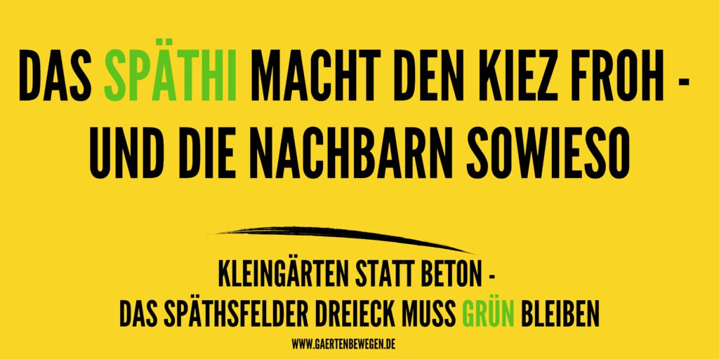 - Erhalt aller über 500 betroffenen Kleingartenparzellen im Späthsfelder Dreieck.